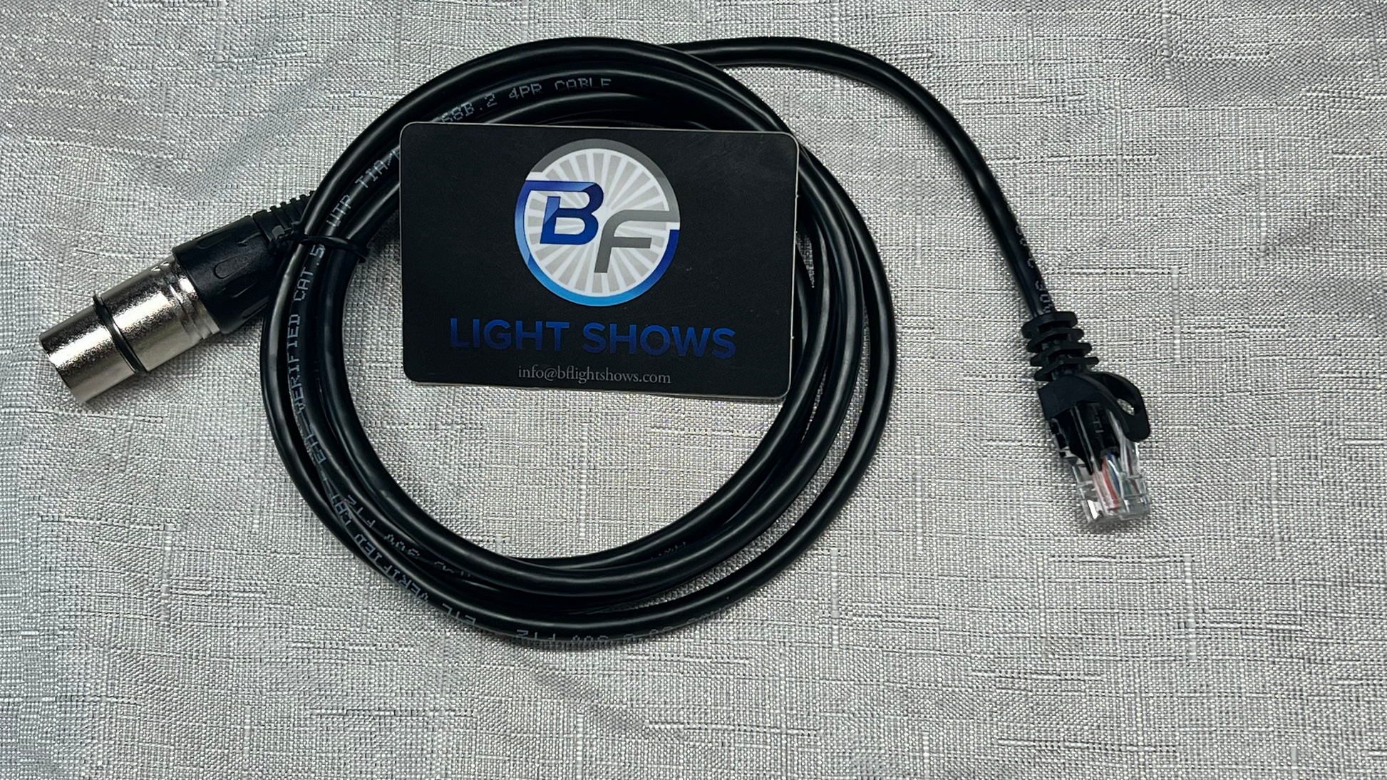 Custom manufactured DMX to RJ45 cables in 6.5 foot lengths. These cables were made specifically for use with DMX products to work with controllers and designed to work with xlights.