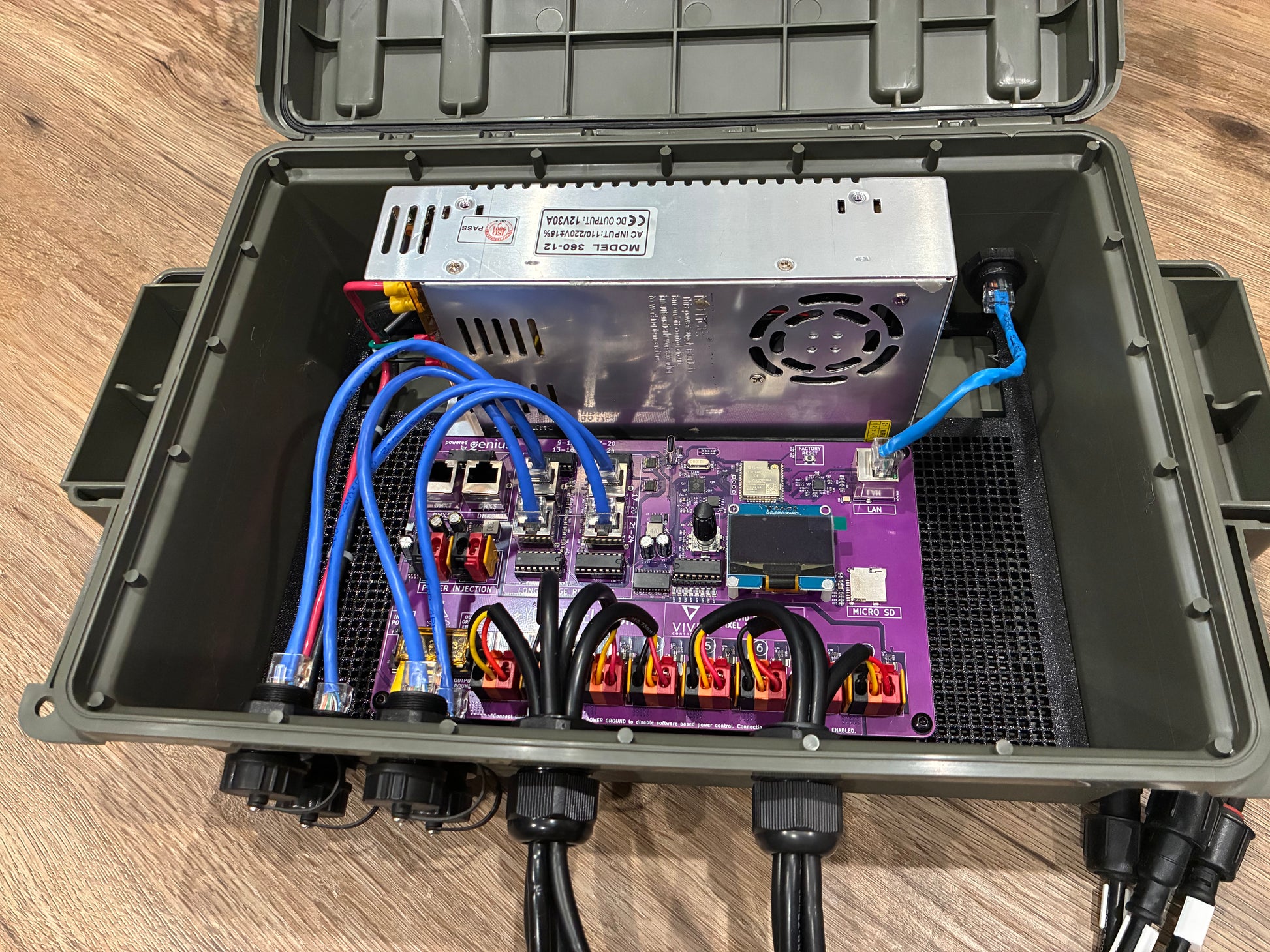 No more needing to reprint a mount year after year as your show continues to grow and change. Easily secure wiring through grid system with zip ties. Fits both Meanwell LRS-350-12 and Generic switching power supplies
