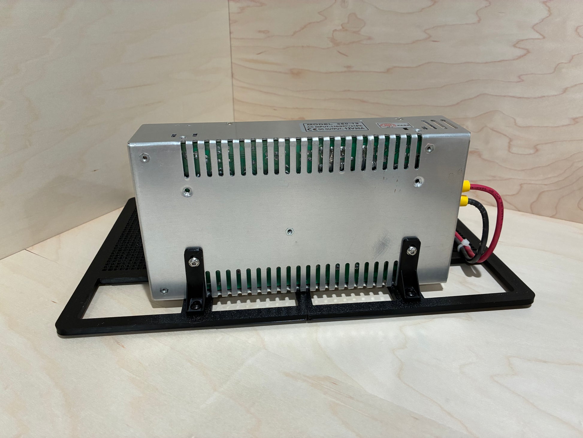 No more needing to reprint a mount year after year as your show continues to grow and change. Easily secure wiring through grid system with zip ties. Fits both Meanwell LRS-350-12 and Generic switching power supplies