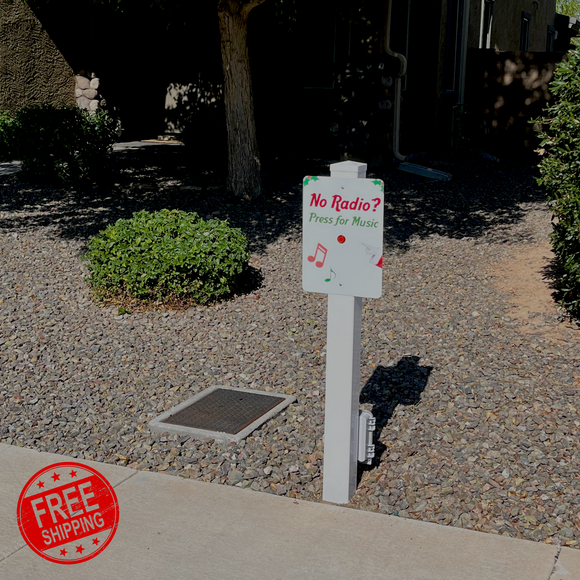 We are proud to offer a new spin on the famous ‘Steve’s Push Button Setup’ that so many people love! The push button setup is a great addition to a pixel light show that is synchronized to music. This Push Button Setup allows viewers on foot to hear the same show music that you offer to viewers in their vehicle via an FM transmitter. You set the amount of time you want the music to play though speakers in your yard and once that timer runs out, the external music stops playing but the FM transmitter music and the light show is not affected! Viewers on foot love having the power to be able to interact with the show by pressing a button for music! The setup includes everything needed to get started! All you need to supply is a post, a speaker or two, and little bit of your imagination!